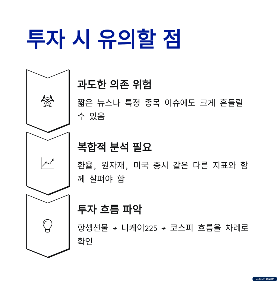 반대로 -1% 이상 약세를 보이면 투자 심리가 위축된 상태에서 장이 시작될 수 있다.