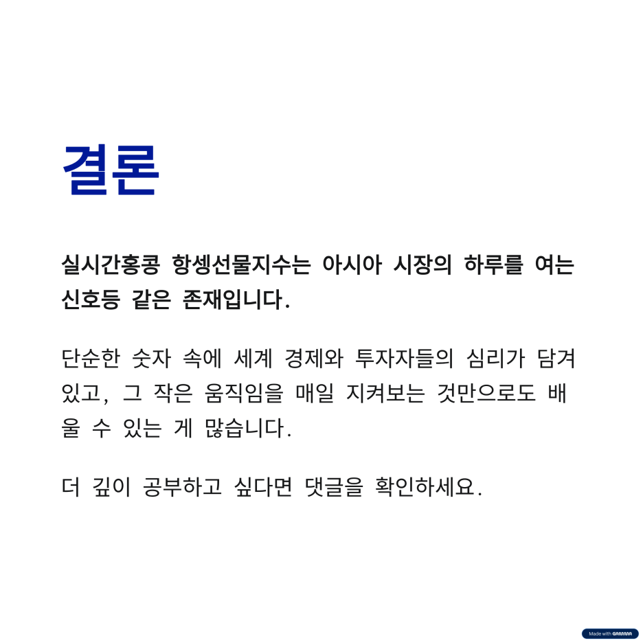 실시간홍콩 항셍선물지수는 아시아 시장의 하루를 여는 신호등 같은 존재다.
