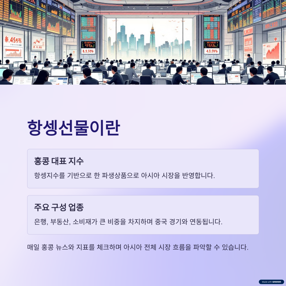 항셍선물은 홍콩 대표 지수인 항셍지수를 기반으로 만들어진 파생상품이다.