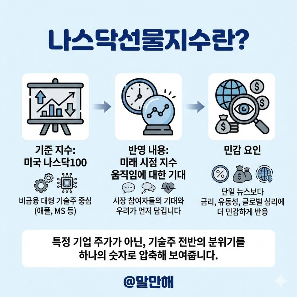 FOMC 같은 통화정책 이벤트나 금리 기조 변화는 기술주 전반의 기대치를 바꾸고, 그 변화가 선물지수에 먼저 반영되는 경우가 많습니다.