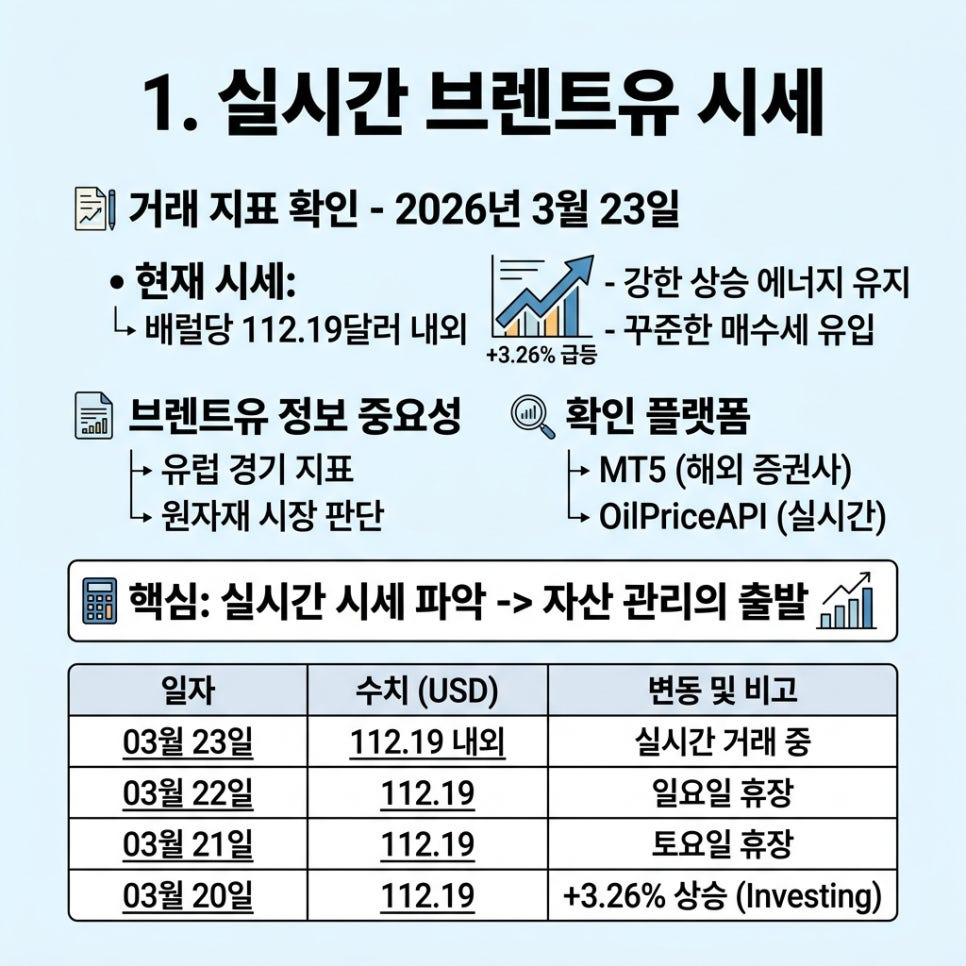 실시간으로 변동하는 브렌트유 시세 수치를 정확히 파악하는 능력이 자산 관리의 출발점이 됩니다.
